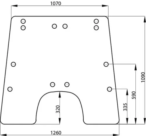 Numer częściAL71287N EAN3660980063319JednostkaSztuka Pozycja montażuPrzód Góra Szerokość górna1070 mmSzerokość dolna1255 mmWysokość całkowita1090 mmGrubość6 mm
