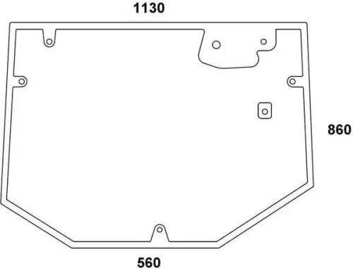 Numer części931812051010N EAN8719493005677JednostkaSztuka Pozycja montażuTył Góra Szerokość górna1130 mmSzerokość dolna560 mmWysokość całkowita860 mmGrubość6 mmIlość otworów7