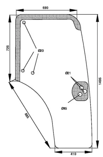 Numer częściD6864 EAN3660980032483JednostkaSztuka Pozycja montażuDrzwi Prawa Wysokość całkowita1495 mmSzerokość całkowita690 mmGrubość6 mmIlość otworów6 KolorZielony PrzyciemnianaTak WypukłaTak
